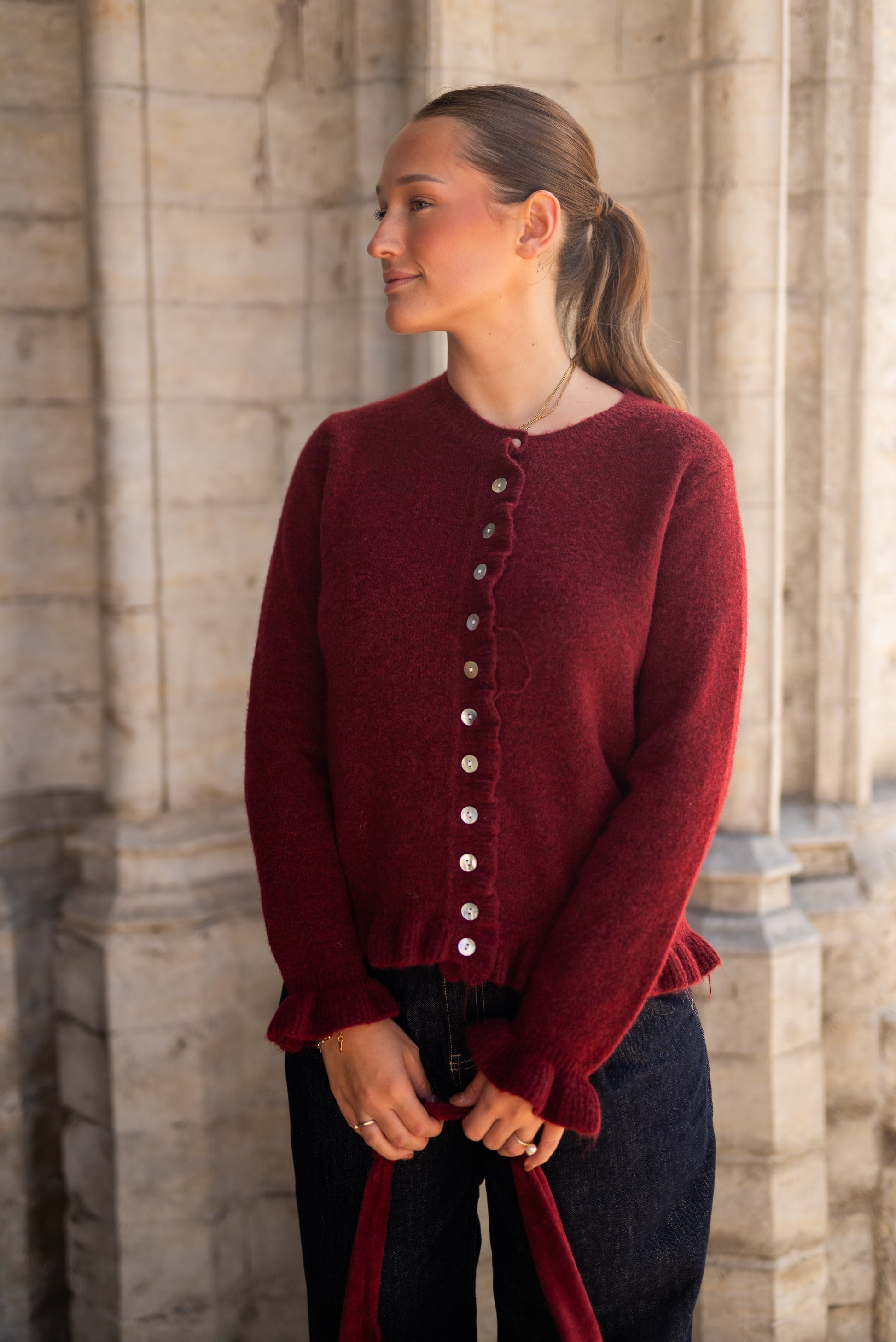Bordeaux ruffle vest